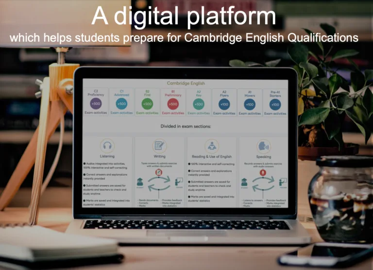 Los cursos INTENSIVOS incluyen acceso 24/7 a cientos de ejercicios interactivos online gracias a una plataforma digital de actividades alineados con Cambridge, que permite practicar a través de ejercicios cortos y efectivos y a tu propio ritmo. En teléfono, tablet o ordenador.